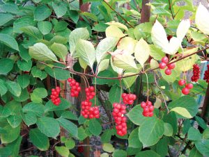 Schizandra čínska (Schizandra chinensis) je príbuzná magnólií. Je to opadavá, 8 – 15 m dlhá liana s pravotočivými stonkami, ktorá tvorí krásne dekoračné zelené steny, ba dokonca i zelené vodopády. Na jar pekne a voňavo kvitne, koncom leta aj s množstvom pekných červených plodových strapcov. Jej eliptické listy so špicatým zakončením zasa na jeseň zmenia farbu na zlatú.