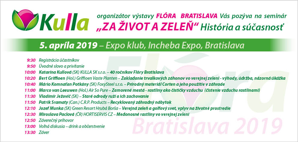 SEMINÁR ZA ŽIVOT A ZELEŇ - FLÓRA BRATISLAVA 2019