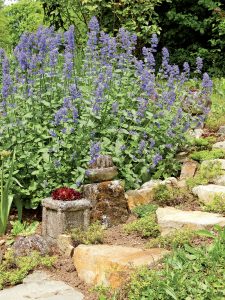S kocúrnikom záhradným (Nepeta × faassenii) nepochybíme v nižšej skupinovej výsadbe, kde sa vysádza v počte až 8 ks na 1 m2.