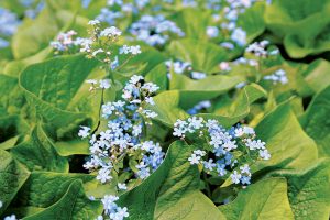 Brunera veľkolistá (Brunnera macroprilla) je dekoratívna listami, ktoré sú v závislosti od kultivaru dostupné vo farbách od svetlozelenej cez tmavozelenú, sivastú až po strieborne či bielo žilkované.