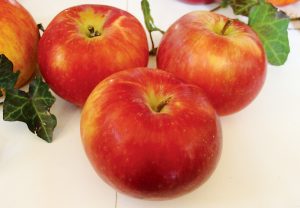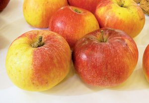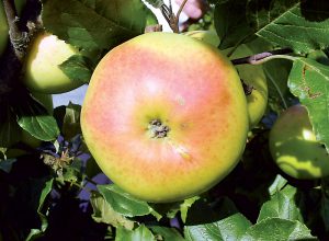 Plody sú veľké (priemerná váha 170 g). Hladká svetložltá šupka je krytá minimálne z 1/3 prekrásnou karmínovou červeňou, často úplne súvislou. Po celom povrchu plodu sa nachádzajú tiež belavé i tmavšie lenticely. Celkovo patrí k najkrajším jablkám, veľmi dobre predajným. Dužina je pevná, takmer biela, primerane šťavnatá, kyslasto-sladká, mierne korenistá, s pikantnou príchuťou. Na vzduchu nepatrne hnedne. Odroda je v dreve pomerne dosť odolná proti mrazom.