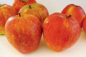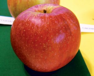 Plody sú veľké (priemerná váha 160 g). Základná žltá farba šupky je z 1/4 až 3/4 prekrytá živou panašovanou červeňou. Charakteristickým znakom odrody sú aj hnedé bodky, ktoré sa vyskytujú po celom povrchu plodu. Dužina je pevná, chrumkavá, príjemne kyslastá, bez výraznej arómy, na vzduchu takmer nehnedne. Plody nevädnú, sú dobre predajné. Odroda je náchylná na vlnačku krvavú a vo vlhkých podmienkach je náchylnejšia na chrastavitosť.