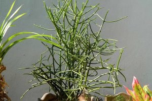 Atraktívny a moderne pôsobiaci sukulentný druh. Na sýtozelených okrúhlych stonkách má drobné, opadavé lístky. Rýchlo rastie, je nenáročný a veľmi vhodný do moderných, svetlých a priestrannejších interiérov.