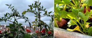 Spomedzi úžitkových rastlín patria medzi najobľúbenejšie rajčiny. Tie môžu byť špeciálne balkónové – menej vysoké odrody, ale vo veľkých nádobách. Dajú sa pestovať aj kolíkové odrody vhodné do záhrad. Nádoba veľkosti vedra (cca 10 – 15 l) umožňuje dobré podmienky aj pre dvojice dvojmetrových kolíkových rajčín.