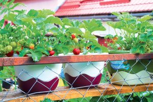 S príchodom jari sme pevné priesady premiestnili do samozavlažovacích kvetináčov a hrantíkov. Z predchádzajúcej sezóny bolo zrejmé, že dostatok vlahy ovplyvňuje násadu a veľkosť plodov viac ako dôslednosť vo výžive. Každý výpadok v zavlažovaní spôsobuje nezvratný stres. Jahodník sme v nových pestovateľských nádobách premiestnili na plot, kde sa mu ušlo dosť potrebnej starostlivosti.