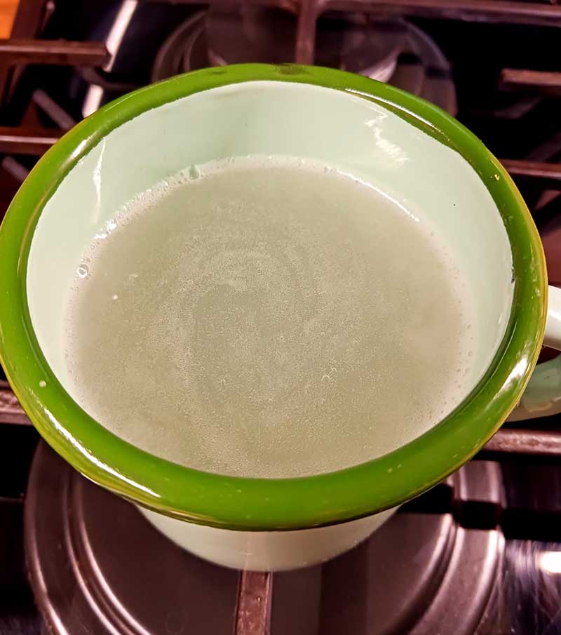1. Na jednu šálku studenej vody použijeme 1 lyžicu kuzu prášku, ktorý rozmiešame, a varíme, až kým pôvodne biela tekutina nie je číra.