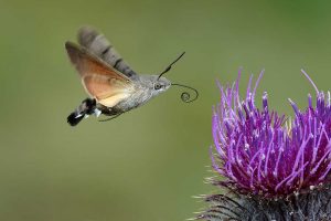 Nazýva sa aj „slovenský kolibrík“ (Macroglossum stellatarum), pretože je veľmi obratný letec. Vyskytuje sa od severu Afriky cez Európu až po Japonsko. Dokáže sa pohybovať vo všetkých smeroch a aj stáť na mieste, podobne ako vrtuľník. Keď letí ponad kvet, rozvinie svoj dlhý jazyk, ktorým zlizuje nektár. Takto prelietava z kvetu na kvet.