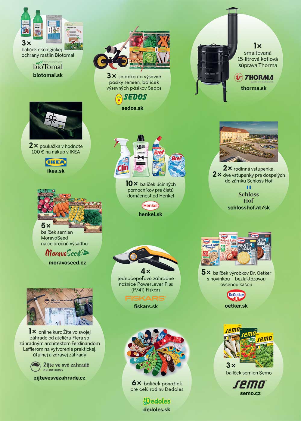 Partneri súťaže: Wiper.sk, bioTomal, SEDOS, THORMA, IKEA, HENKEL, Schloss Hof, MoravoSeed, FISKARS, Dr.Oetker, zijtevesvezahrade.cz, Dedoles, SEMO