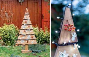 Vymedzovacie hranolčeky vkladané medzi dosky a nosník určujú presný pravidelný sklon. Vďaka nim získa stromček zaujímavejší priestorový vzhľad.