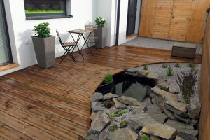 Nohu stromčeka priskrutkujete o prvú časť podstavca. Doštičkami na mieru doplníte výplň do roviny s nohou stromčeka.