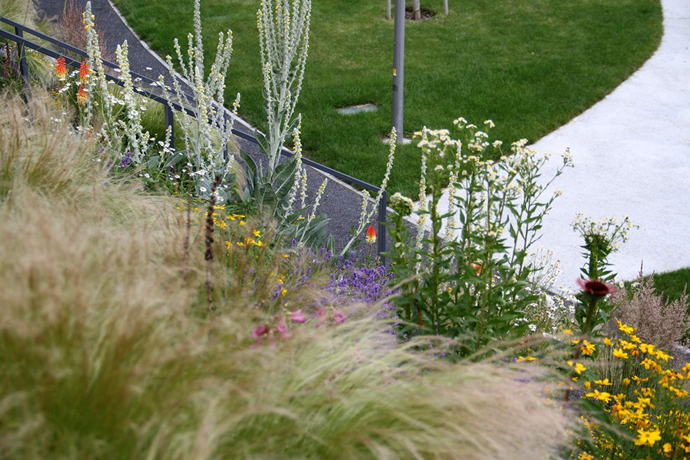 Zo zanedbanej oblasti spravili mestský park plný farieb. Kruhovú tribúnu obsypali pomarančmi