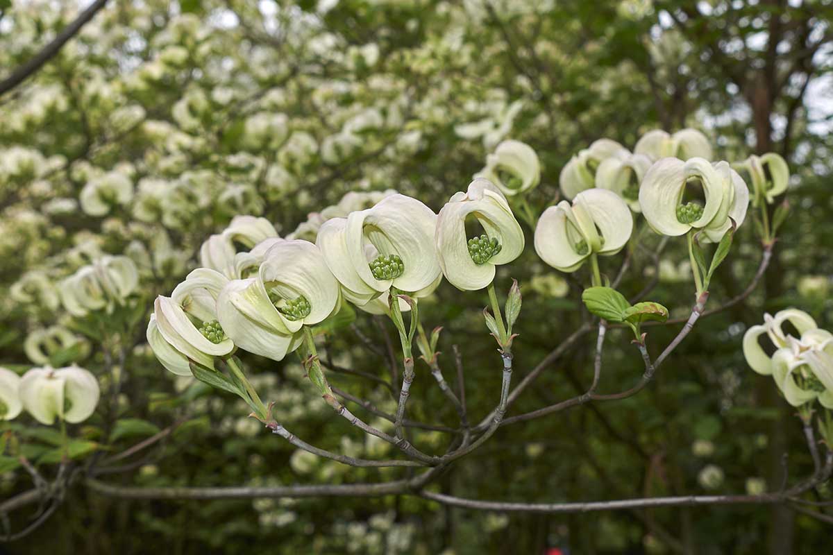 Listene vyzerajú ako kvety, ale sú to premenené listy rastúce tesne pod kvetmi. Kvety rozkvitajú v júni, už na olistených rastlinách, takže pekne vynikne ich kontrast.