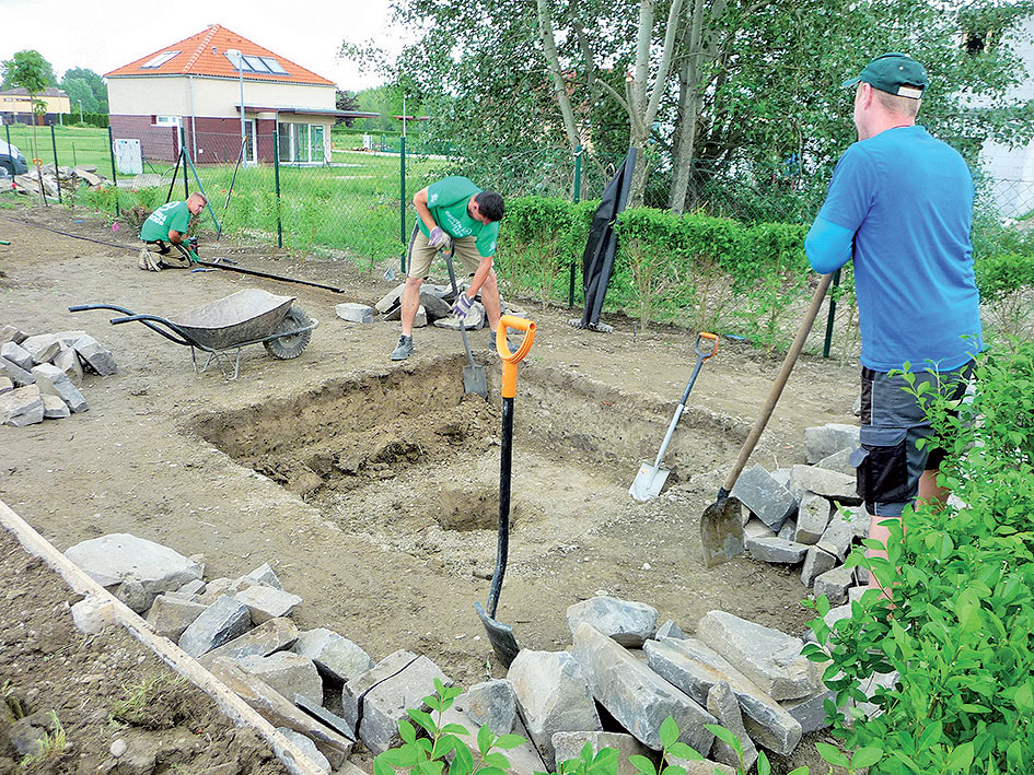 Počas vykopávania jamy upravíme aj okolie, pričom použijeme vrchnú vrstvu zeminy z výkopu. Môžeme rovno vysadiť už aj živý plot.
