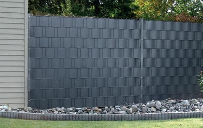 Ponúkame na predaj kryciu pásku na plotové panely, grafitovej farby s dreveneou štruktúrou.