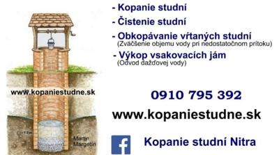 MM studne s.r.o realizujú: - ručný výkop studní - čistenie kopaných studní - výkop vsakovacích jám na odvod daždovej vody - predaj a dovoz betónových skruží a poklopov www.kopaniestudne.sk https://www.facebook.com/cisteniestudni