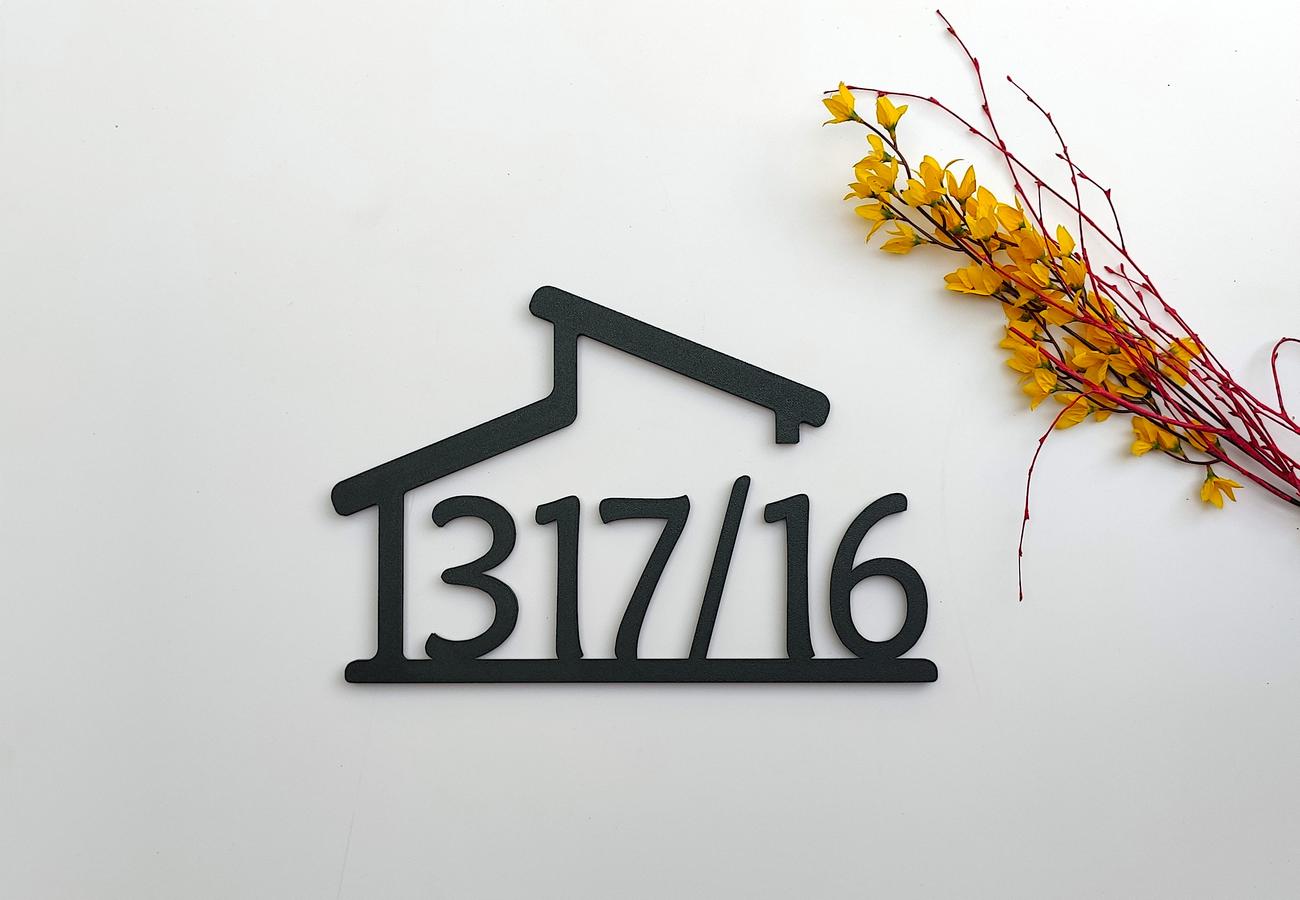 Domy s pultovou strechou odzrkadľujú súčasný trend nízkoenergetických domov a tešia sa čoraz väčšej popularite. Plochá/pultová strecha dodáva domu moderný vzhľad. Číslo domu v rovnakom dizajne tak dotvára celkový dojem jedinečnosti. Je ponúkané vo verzii s garážou (s autom, bez auta), bez garáže, v klasickej ➡️ aj v opačnej ↩️ (obrátenej) verzii. Výška číslic 11, prípadne 14cm.
