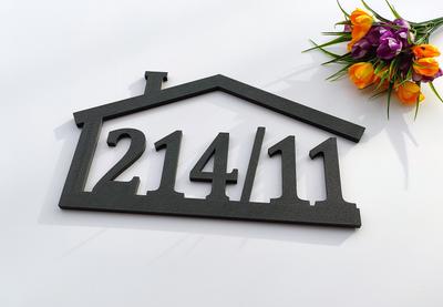 Súpisné číslo v najobľúbenejšom prevedení v tvare domčeka. Číslo je vyrobené z plastu odolného voči UV žiareniu a poveternostným vplyvom. Je ľahké, pružné a na fasádu sa dá jednoducho nalepiť napríklad lepidlom Mamut, prípadne aj zavesiť zo zadnej strany na hlavičky skrutiek. K dispozícii mám 38 farieb, napríklad: čierna, antracitová, hnedá, tmavo-hnedá, šedá, strieborná, atď. Výška číslic pri tomto prevedení je 9, 12 alebo 15cm. Výška celého čísla je od 23 do 35cm, dĺžka závisí od počtu číslic.