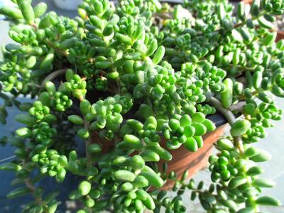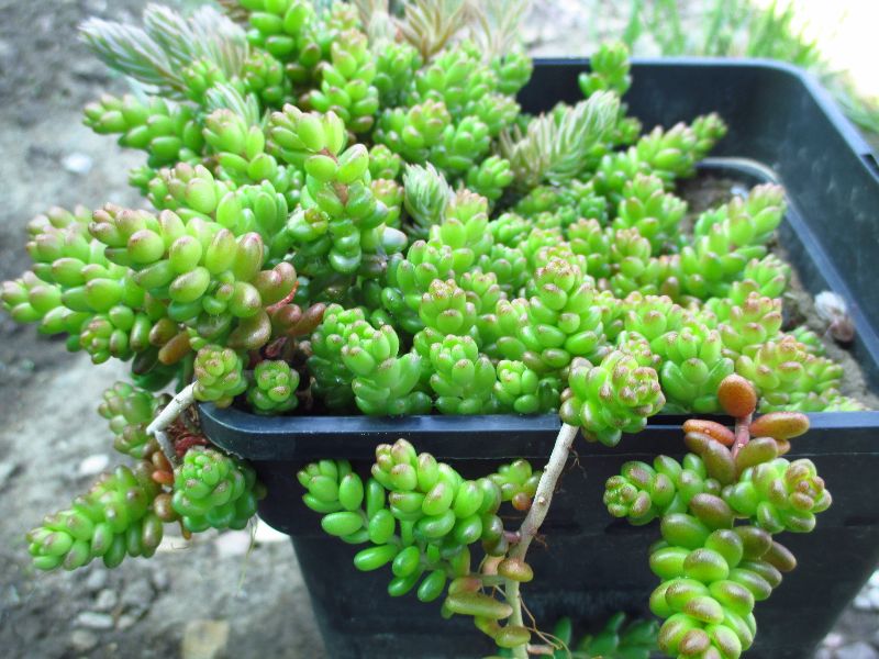 Predám rozchodník rubrotinctum. Je to trvalka, rýchlo rozrastajúca sa skalnička, so sviežo zelenou farbou listu s tučnolistovým tvarom, kvitnúca bielymi súkvetiami. Je vhodný na pestovanie v skalkách, ako pôdopokryvná rastlina na strechu, na okrajoch záhonov alebo v nádobách. Plne mrazuvzdorný. Min. odber 5 ks.