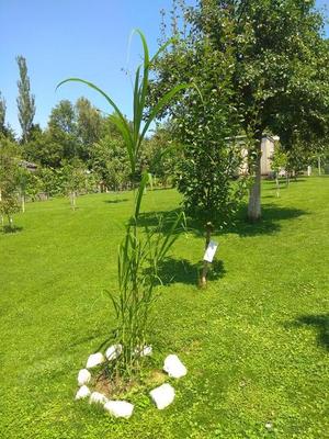 tento obrovský trávnatý vzácny druh pochádza z Číny a dorastá až do výšky päť metrov. Tráva pripomína bambus a stonky majú fialovú farbu. Počas zimy stráca všetky nadzemné časti a na jar začína rásť veľmi skoro s enormnou rýchlosťou rastu. Znáša silné mrazy až do -20 ° C.