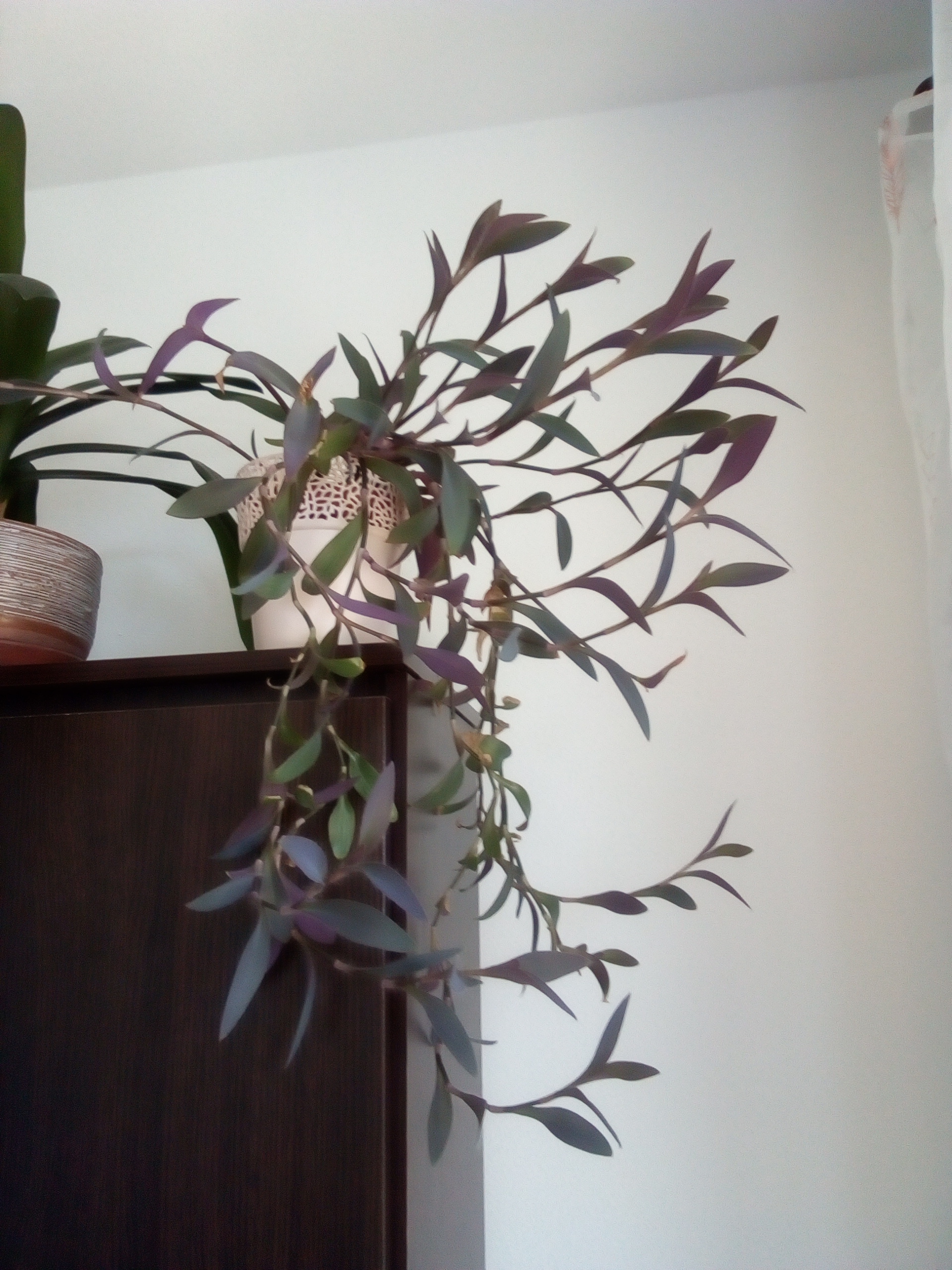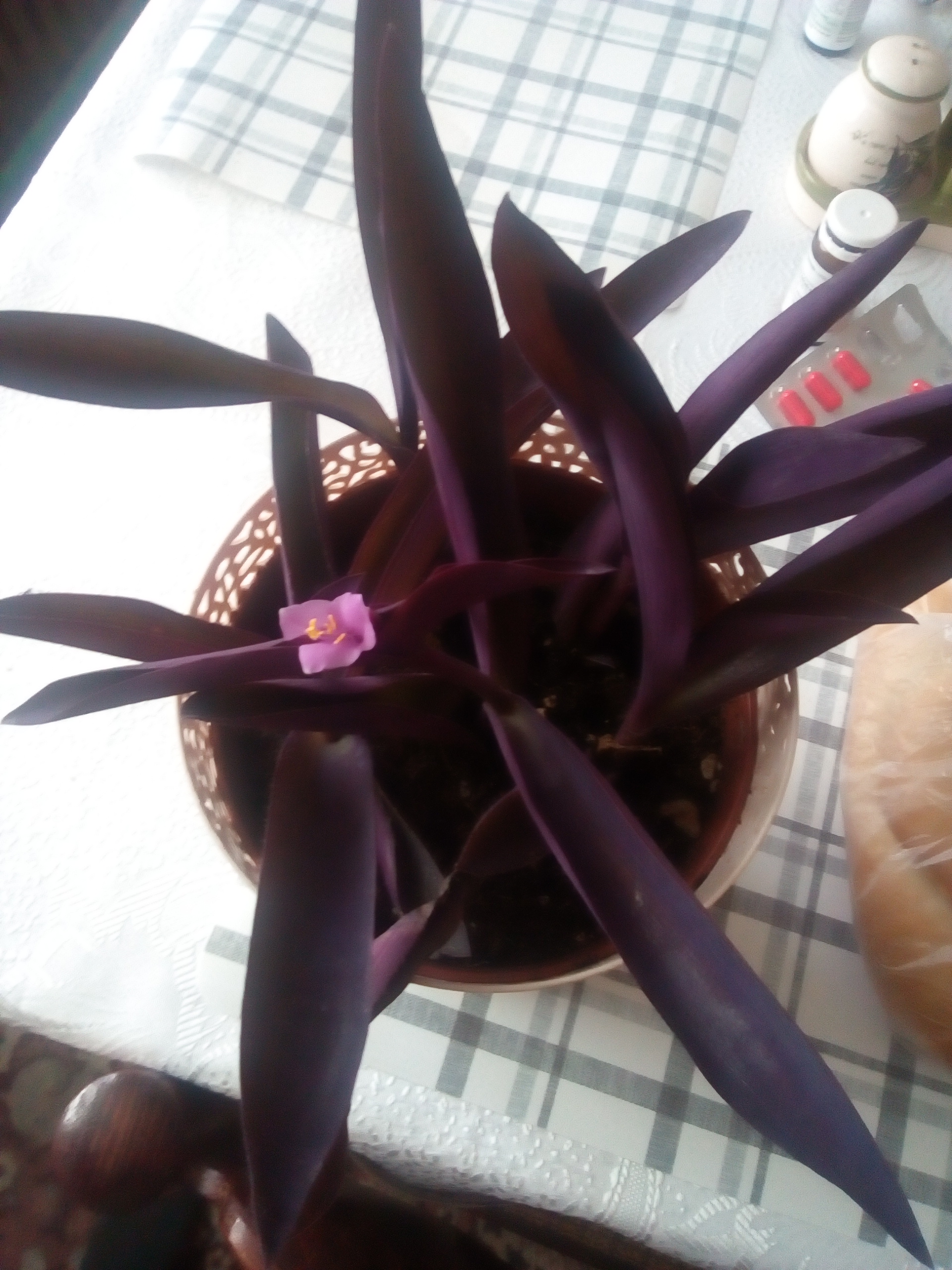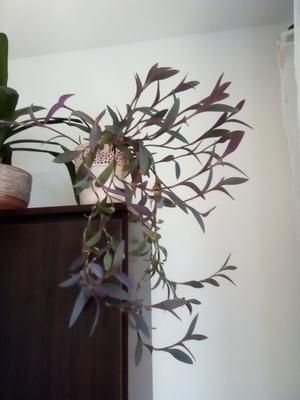 Kvitne drobnými svetlofialovými kvetmi, aby mala fialové listy, potrebuje dostatok rozptýleného svetla, 5 ks odrezkov nezakorenených, cena: 1 €/ks. V lete môže byť sj vonku.
