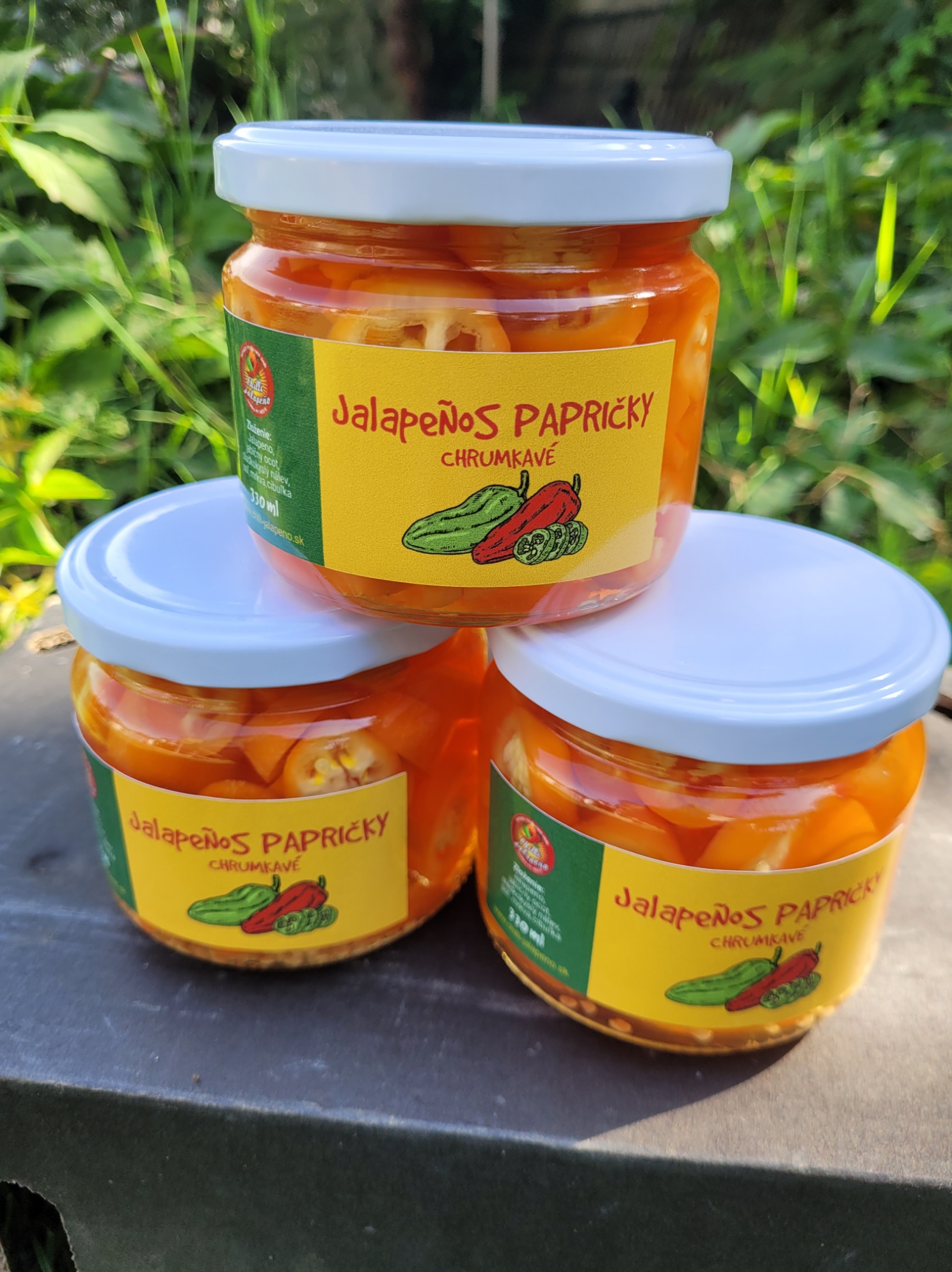 • Oranžové zavárané Jalapeňo papričky chrumkavé – sterilizované 330ml = 5 €