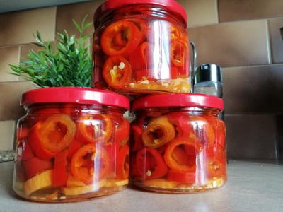 • Červené zavárané Jalapeňo papričky chrumkavé – sterilizované 330ml = 5 €
