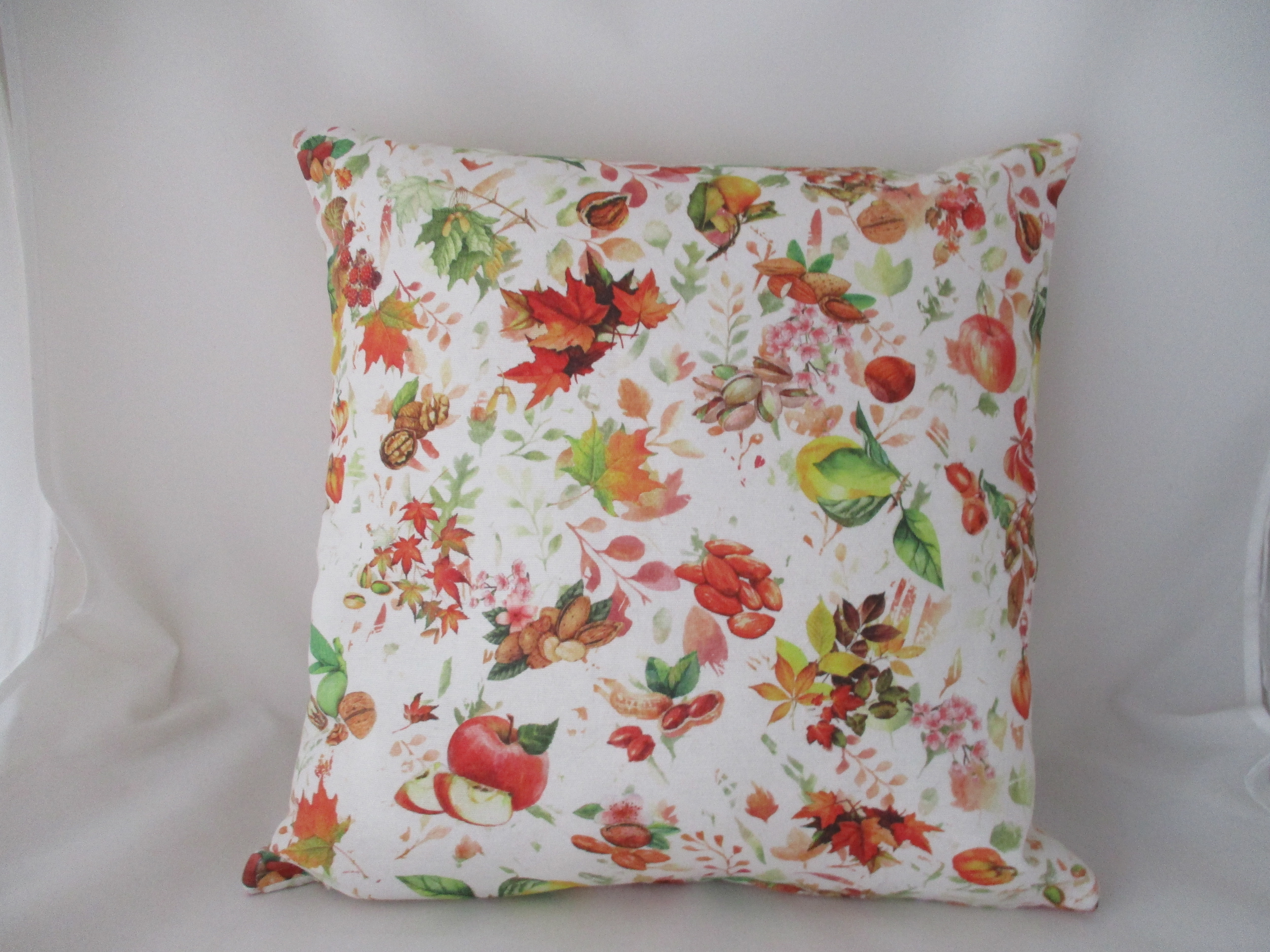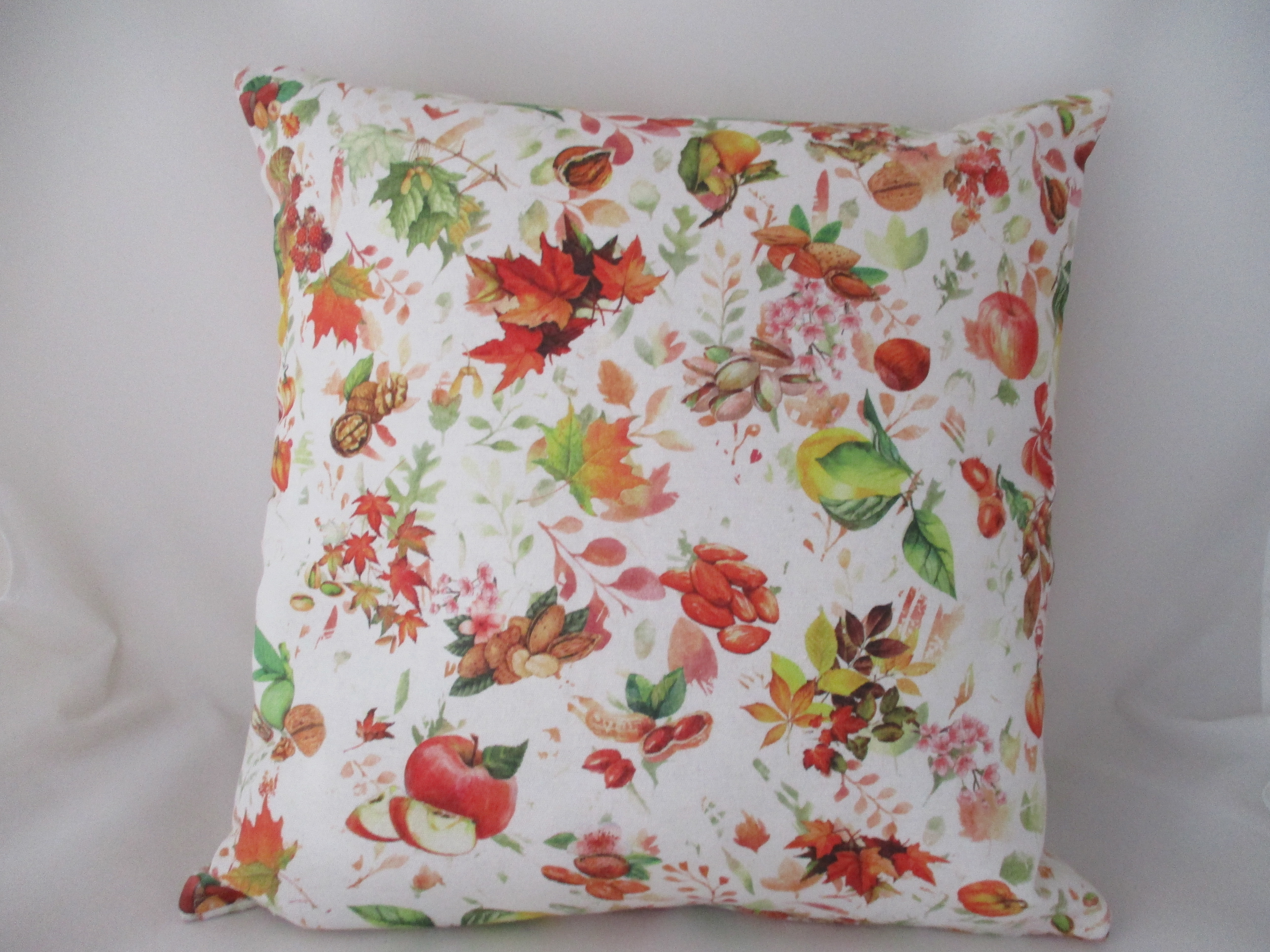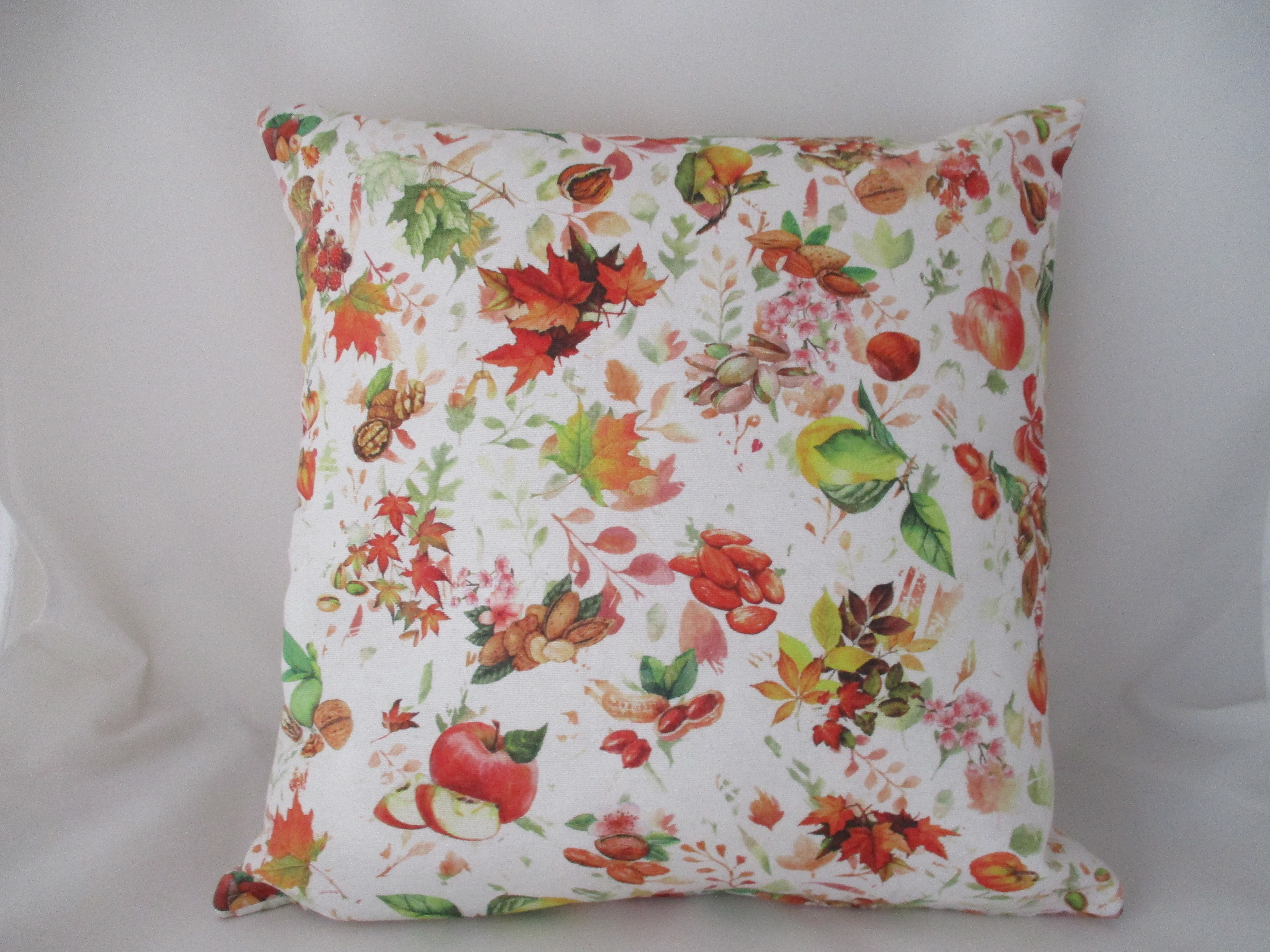 Obliečka na vankúš s jesenným motívom po oboch stranách, ušitá z kvalitnej zmesovej bavlnenej látky, zapínanie na zips v spodnej časti. rozmer 40x40 cm; cena 5,-€ + poštovné