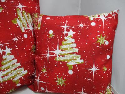 Vianočná obliečka v dvoch veľkostiach, ušitá z kvalitnej pevnej zmesovej bavlnenej látky v červeno-bielo-zlatej kombinácii farieb. Zapínanie je na zips v spodnej časti obliečky.