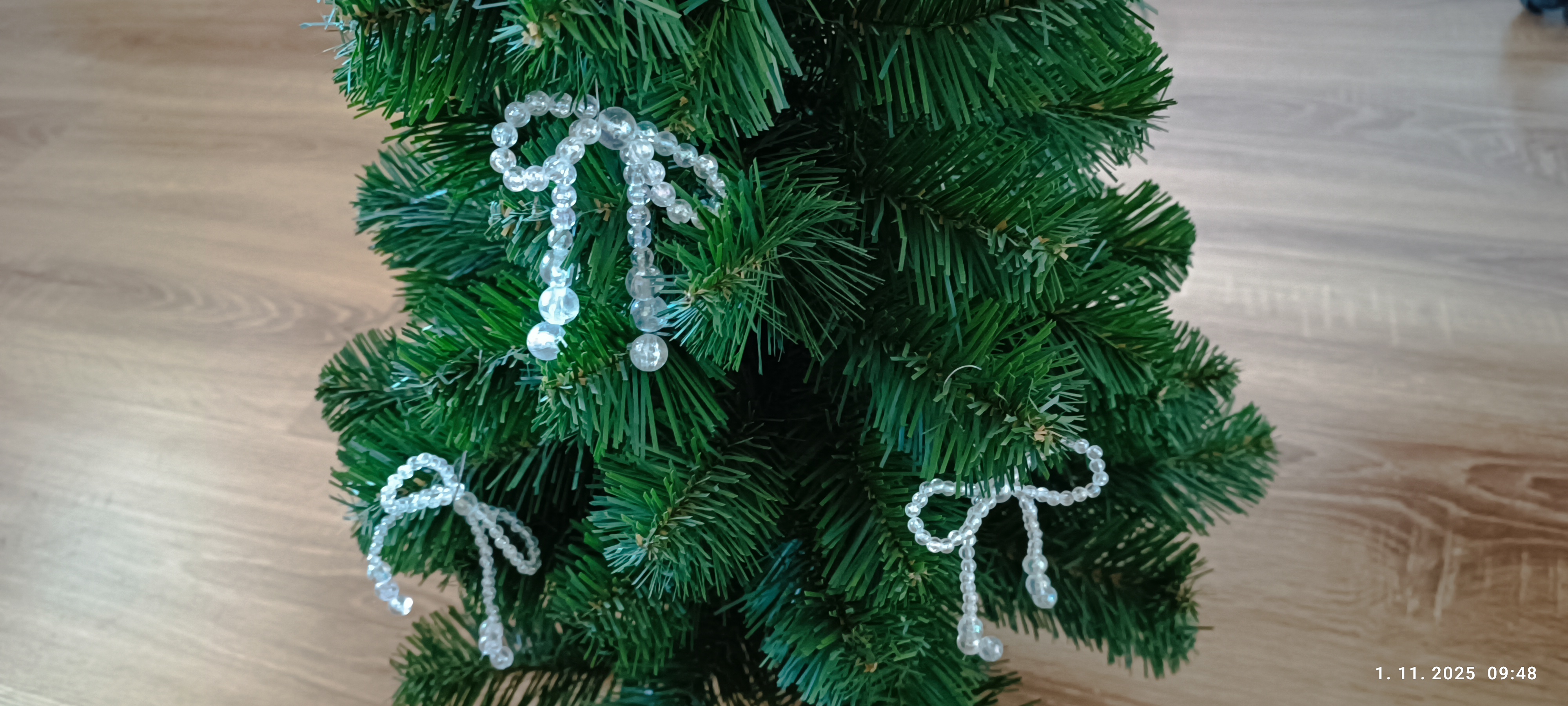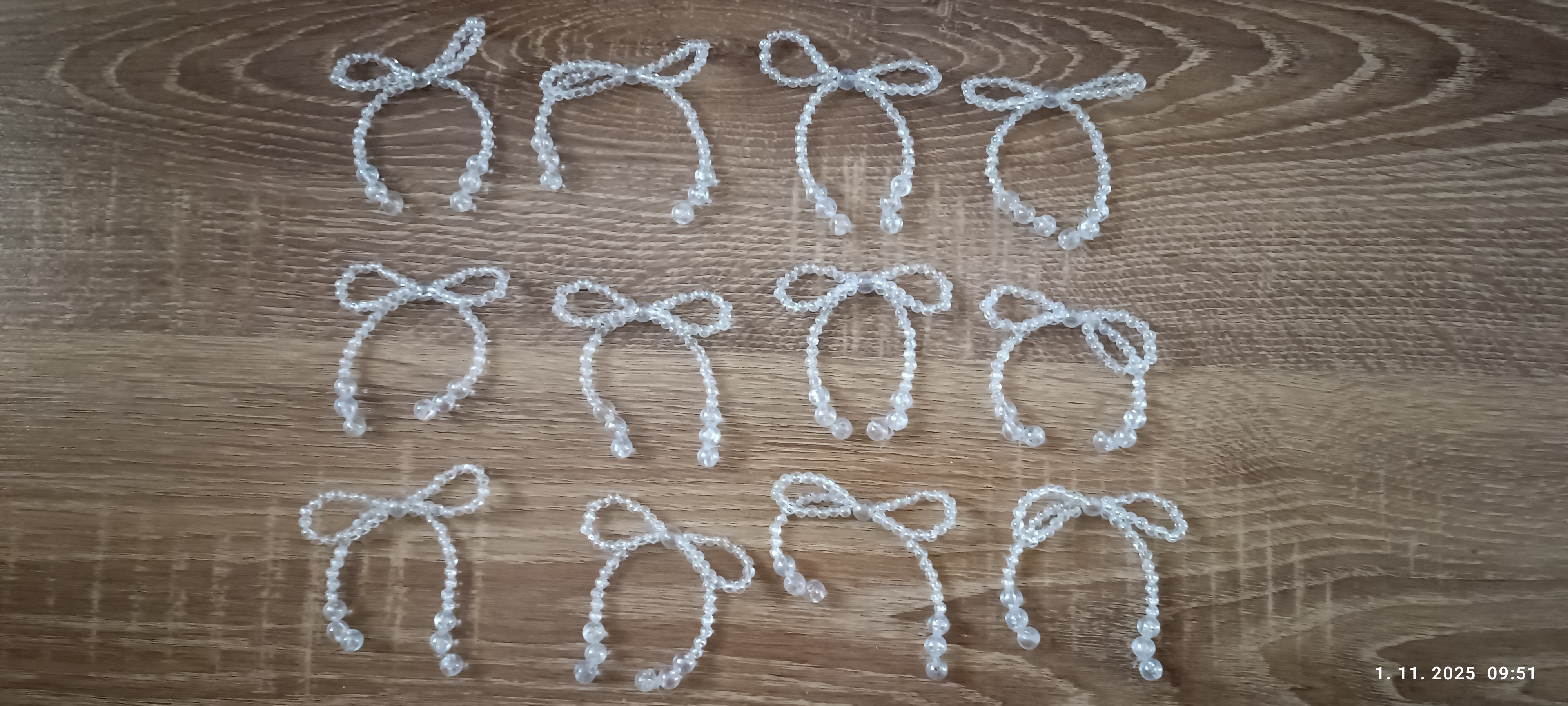 12 ks priesvitných mašlí na výzdobu napr. vianočného stromčeka, vianočného venca, vianočných darčekov, rozmery cca 6cm x 6cm.