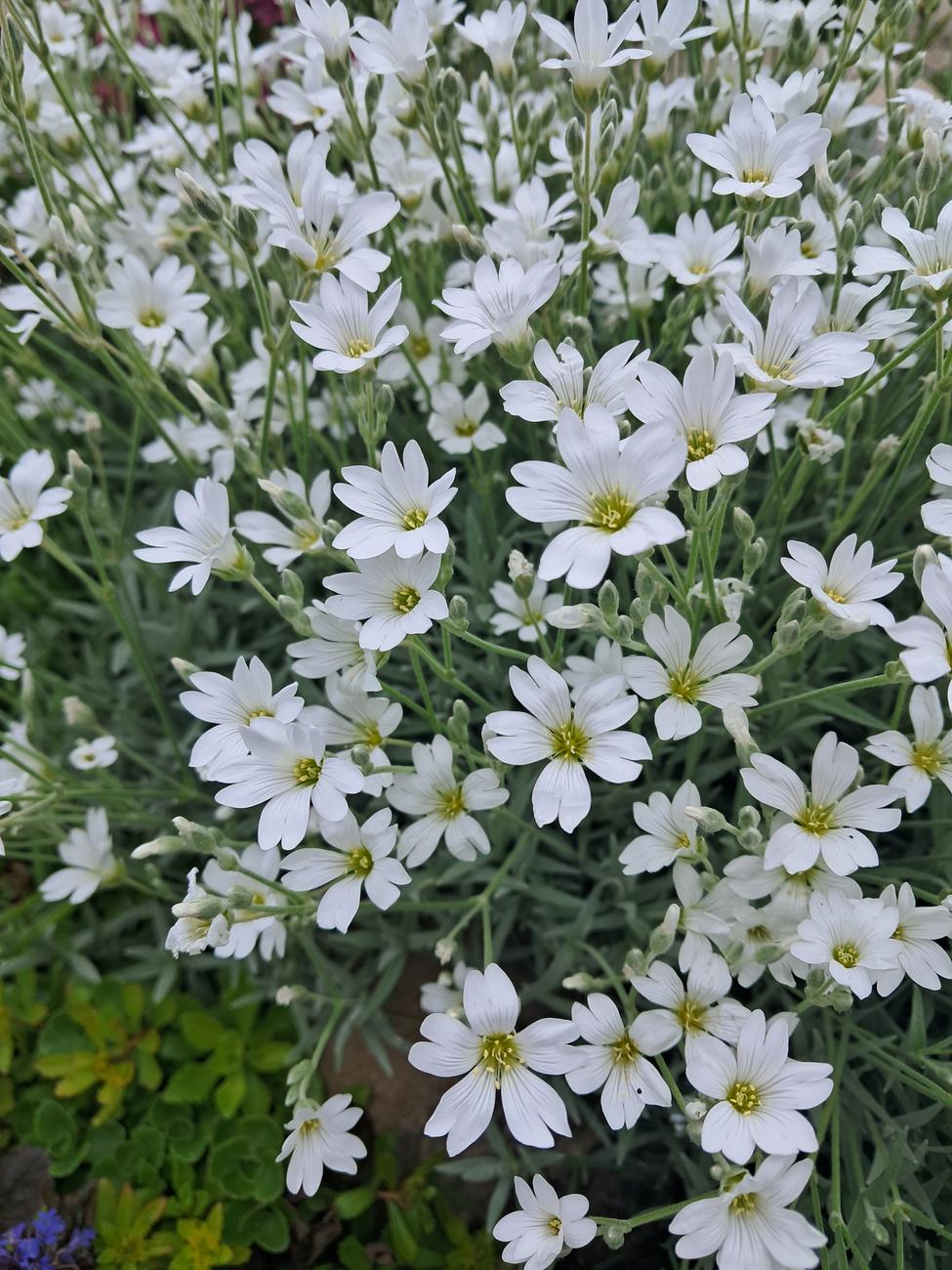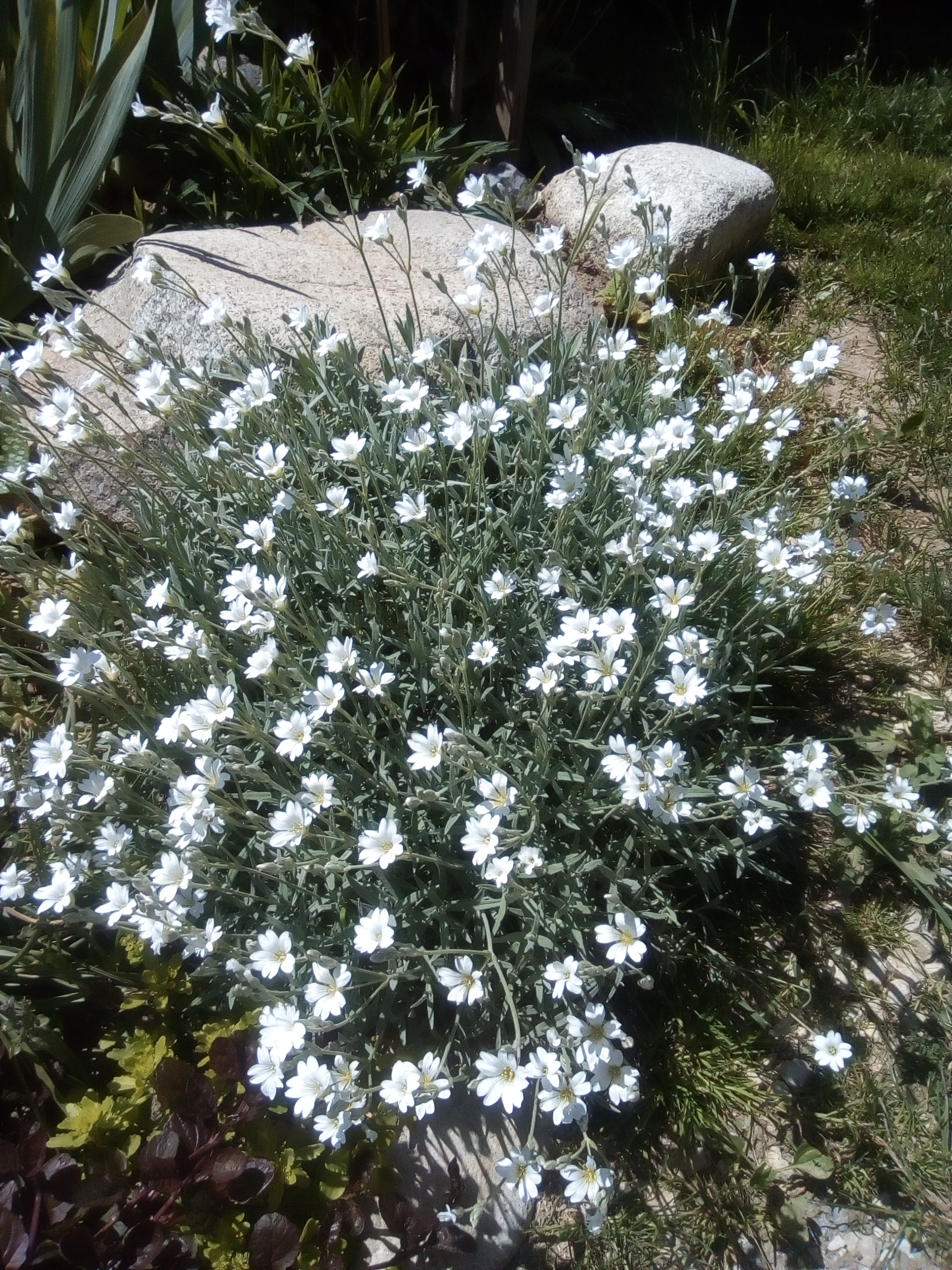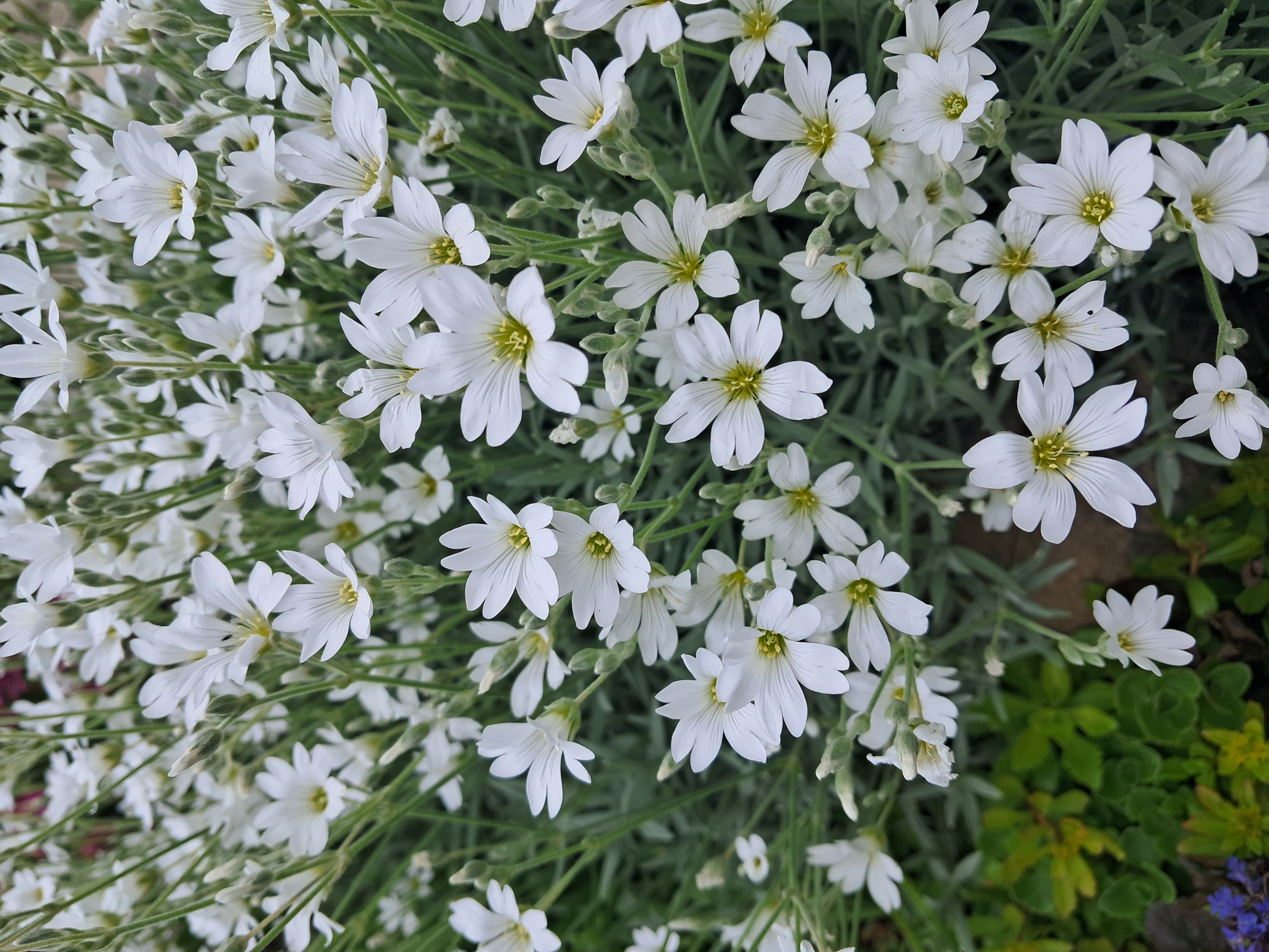 Skalnička, strieborné lístky, biele stojace kvety, krásne sa ťahá a vytvára "kôpky", 4 ks trsov min. 10 x 10 cm, cena: 1 €/trs.