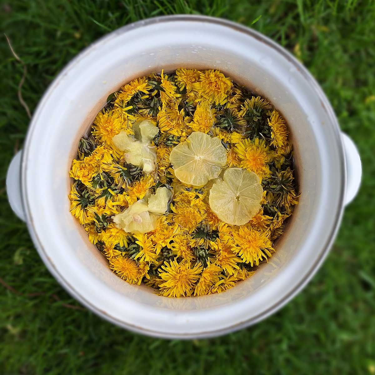 Kvety nasypeme do hrnca a zalejeme 1 litrom vody. Pridáme na kolieska nakrájaný, nie chemicky ošetrený citrón. Privedieme k varu a varíme 20 minút. Potom odstavíme a necháme odležať do druhého dňa.