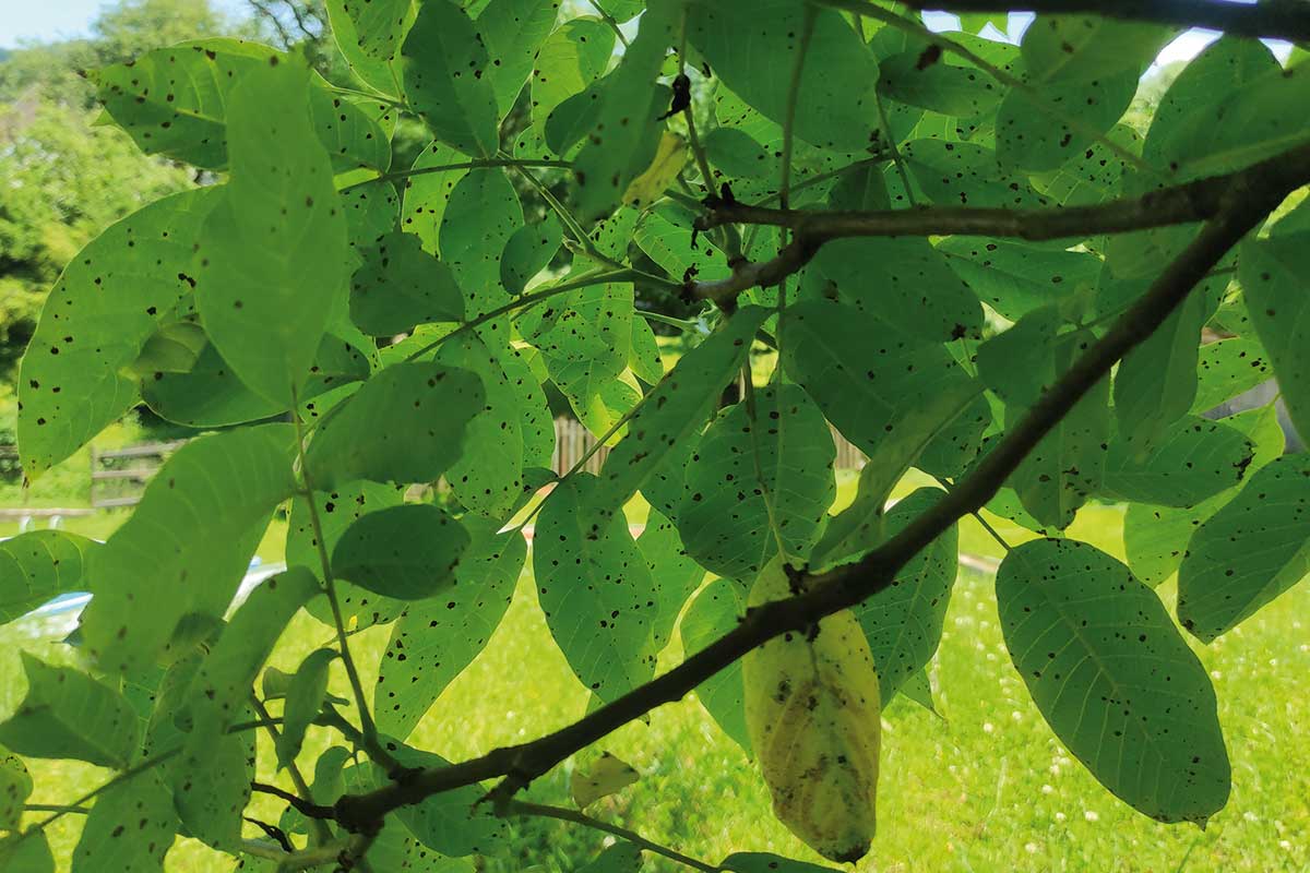 Čím postriekať orech s takýmito škvrnami na listoch?